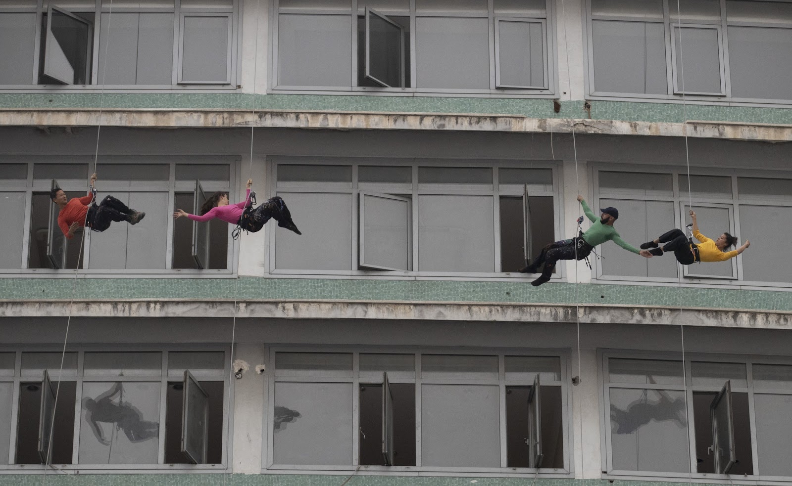 The troupe performed new forms of vertical dance through their movements limited by harnesses